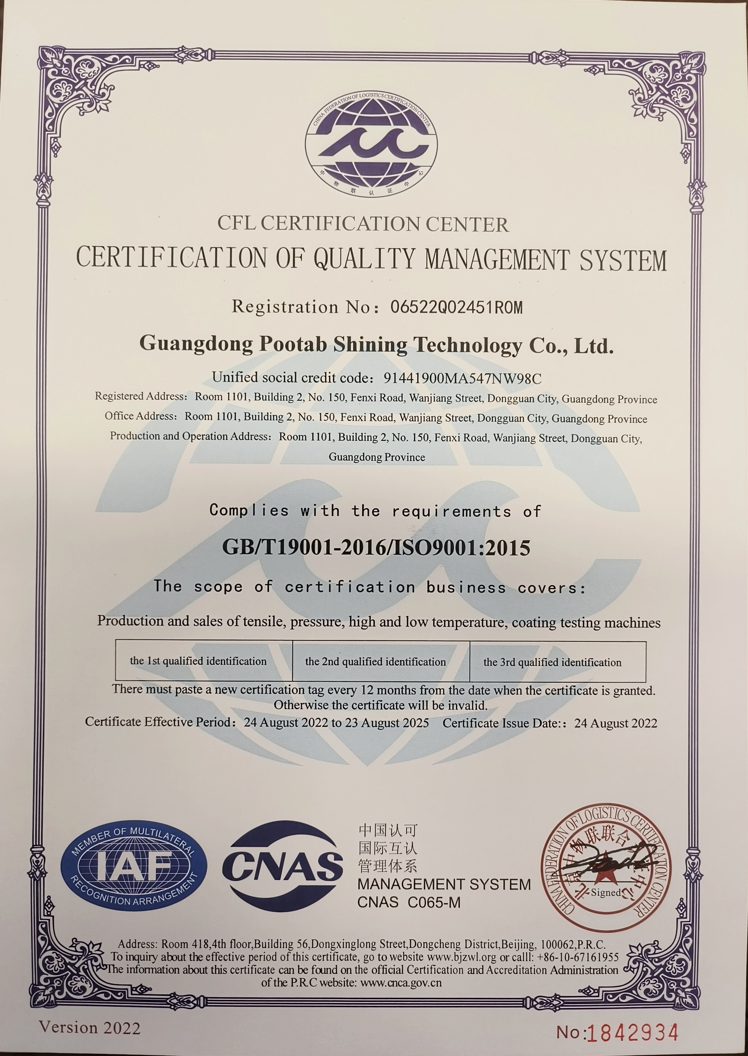 „PERFEKT“ ist der Forschung und der Fertigung der Zugprüfmaschine, Universalprüfmaschine, Klimatestkammer seit 1997 eingeweiht worden.